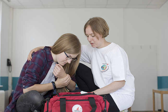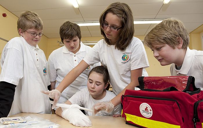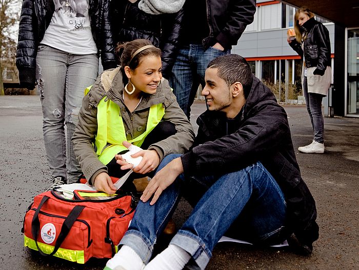 Schüler:innen helfen Schüler:innen: Schulsanitäter:innen sorgen bei Schul- und Sportfesten, Ausflügen und an ganz normalen Schultagen für Sicherheit und helfen ihren Mitschüler:innen bei Notfällen. Sie wissen, wie man einen Verband anlegt, was man bei Vergiftungen tut und wie man die stabile Seitenlage ausführt - die Grundlagen der Ersten Hilfe gehen ihnen leicht von der Hand.
